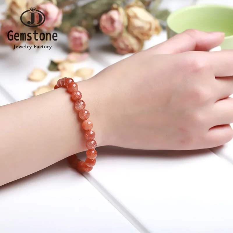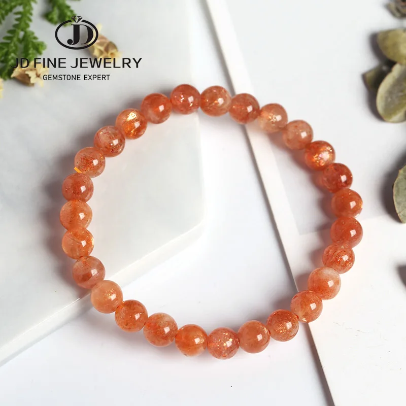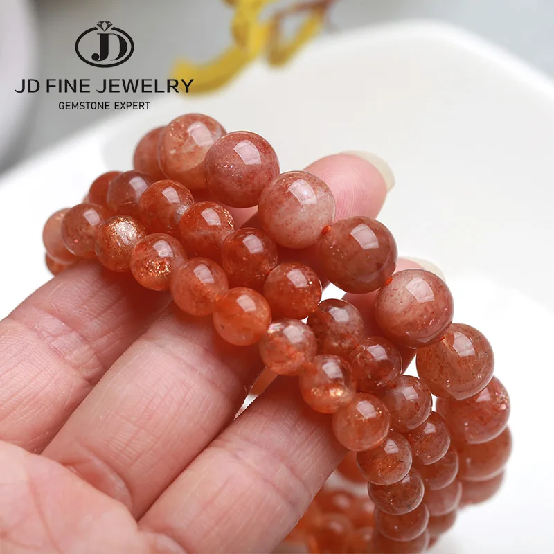 JD New Natural Moonstone Gold Sunstone Strong Light Crystal Beads Bracelet Healing Stone Gift Smoot