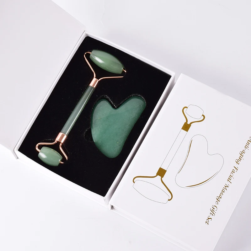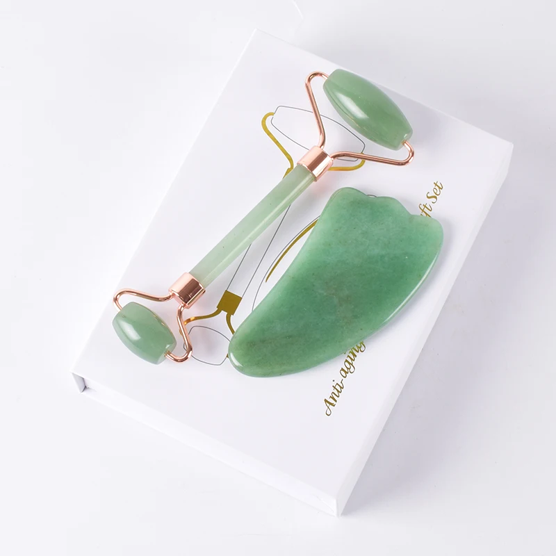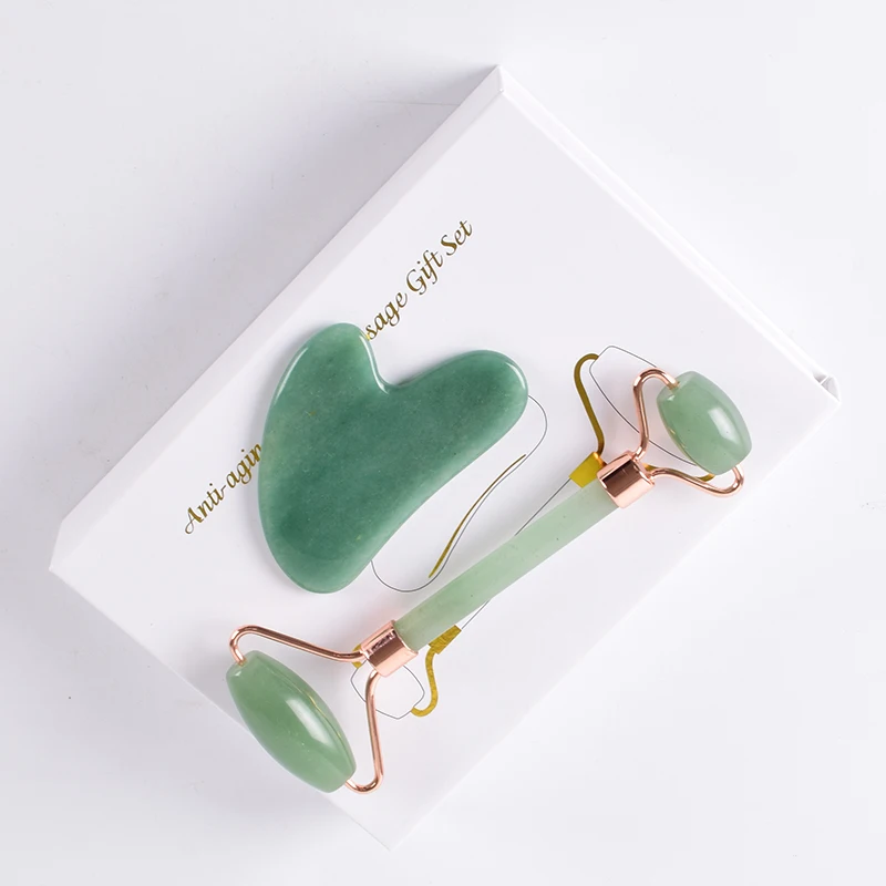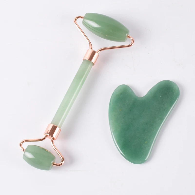 Rose Gold Jade Roller Face Scraping Tool Set Gua Sha Natural Aventurine Massage Body Face Healing S